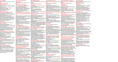 A self written beauty brochure, project on paper. Through 7 languages it writes it self repeatedly. Each time the spelling gets worse until its unreadable and the text blows up. Javascript elaborated together with Frisco Ramarez. Installation at Moscow Artfair 2002.